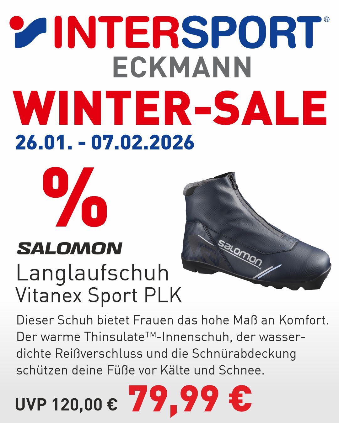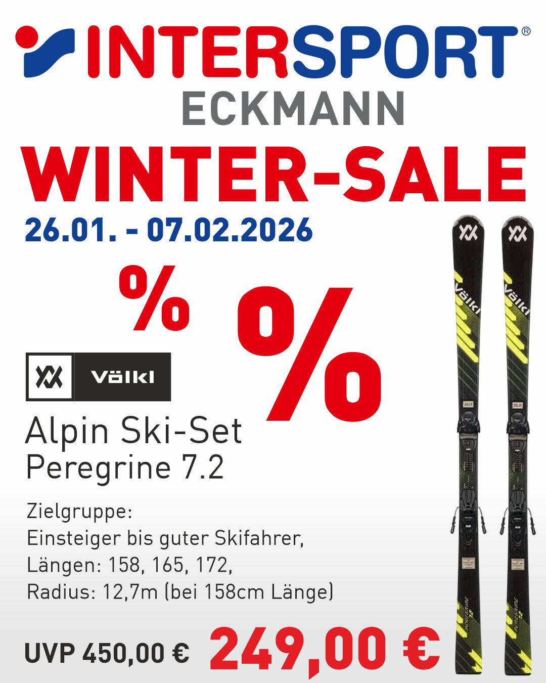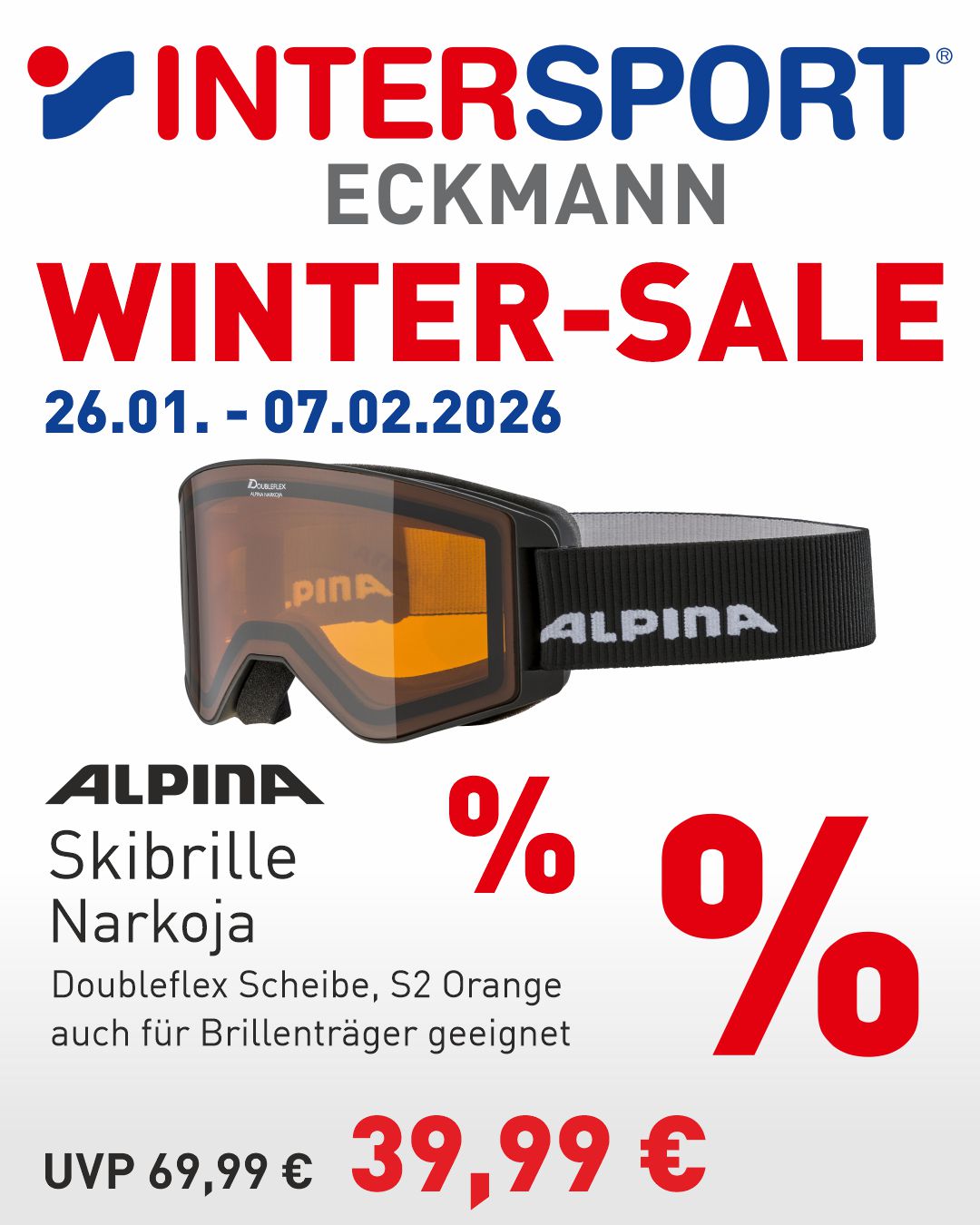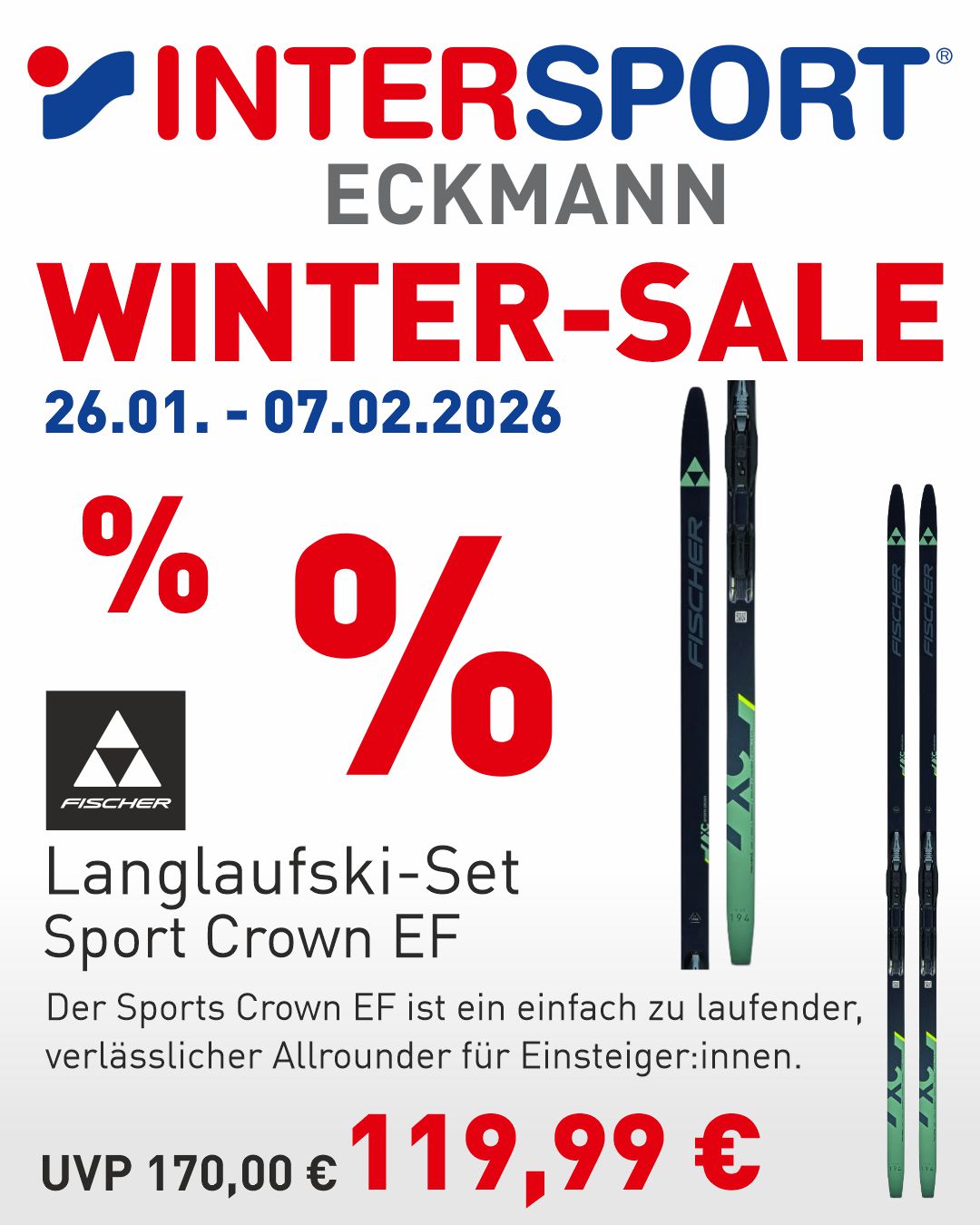* Gilt nicht auf bereits reduzierte Ware, Sonderposten, Skischuhe, -helme und -stöcke, Ski-Sets, Serviceleistungen, Gutscheine und Bestellungen. Nicht mit anderen Aktionen oder Coupons kombinierbar.